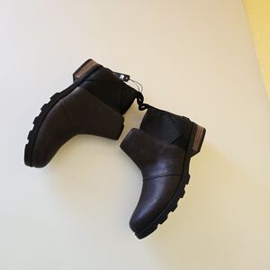 Sorel Emelie Women’s Chelsea Lug Sole blackened brown Waterproof Boots Size 8