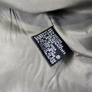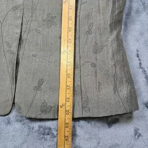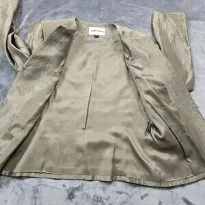 Condition: Pre-owned with light general wear and some wrinkling from storage. Small faint spot on front of blazer and minor mark near front edge. Light wear at sleeve ends. See photos for details.