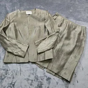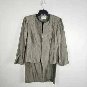 Floral Jacquard Skirt Suit Set Sage Green Size 12