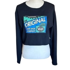 This Vans Ramp Tested Crew sweater will help keep you out cruising all day long. Features a loose fit and cropped hem that are all about comfort and give you plenty of room to move. Sports a crew collar and long sleeves with a large screen printed graphic brand design in front.