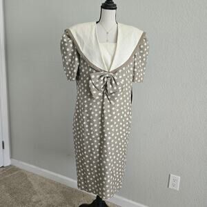 St. Gillian VTG Silk Polka Dot Midi Dress 12 Puff Sleeves Bow Collar Retro 80s
