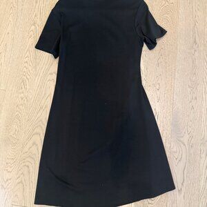 Theory Clinton Knit Black Side Drape, short sleeved, T Shirt Dress, Sz L, VGUC