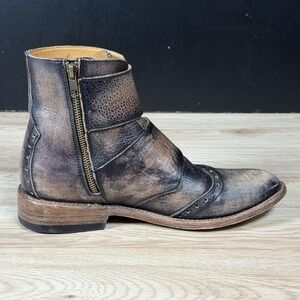 Freebird Penn Boots Mens 9 Brown Distressed Leather Buckle Ankle Zip Distressed