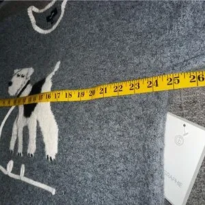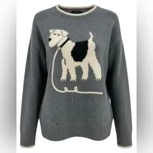 Stay cozy in this charming gray sweater featuring an adorable dog design. Perfect for adding a playful touch to your casual wardrobe.