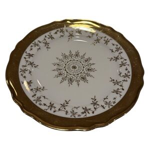 K&A Krautheim Selb Bavaria German porcelain lunch plate features a classic white base adorned with elegant gold trim or detailing. This plate, originating from Germany, is known for its quality craftsmanship and timeless design, making it suitable for various occasions.