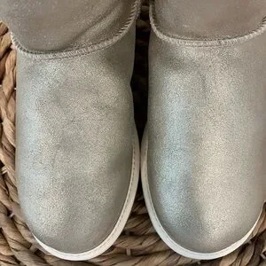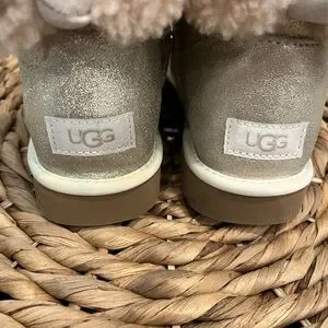 UGG Sparkly Gold Cream Mini Bailey Bow Boots Sherling