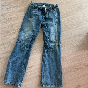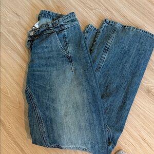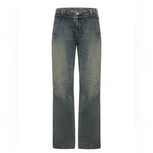 Chic olive jeans with a straight leg design. Perfect for versatile styling.