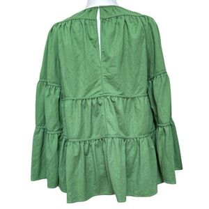 Rebecca Taylor Womens Green Tiered Pique Bell Sleeve Top Princess Boho Flowing