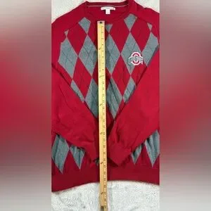 Vintage Cutter & Buck The Ohio State Red and Gray Argyle Crewneck Sweater