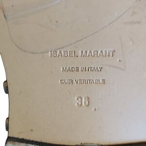 Stylish Isabel Marant sandals. Brown leather straps with gold buckle. Black sole with gold stud accents