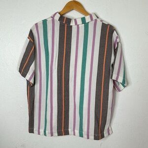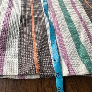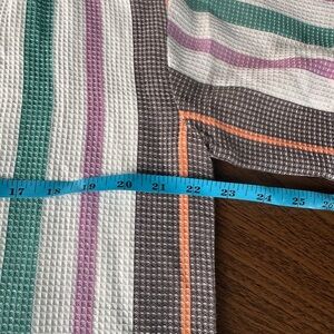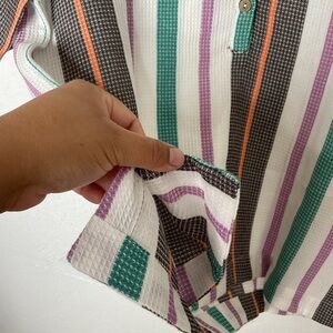 New with tags. Multicolored stripes. 100% cotton. Could fit up to a small. Not sure a medium since it’s 100% cotton :)
