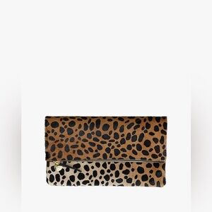 NWT Clare V. Leopard Foldover Clutch calf hair