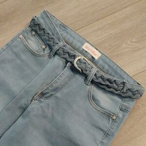 Stylish and comfortable light blue flared jeans perfect for any casual outing. These jeans offer a flattering fit and a trendy look. Inseam approx 31" and relaxed waist measurement is approx 14 1/2". Has some stretch as it has some rayon mixed with spandex.