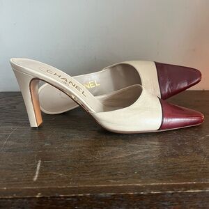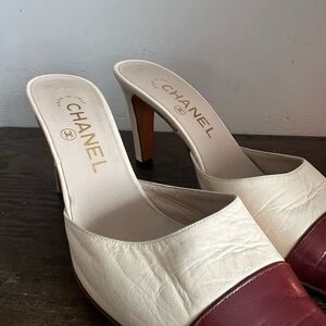 Vintage 90’s CHANEL Two Tone Cream and Burgundy Mules NEEDS REPAIR 37 EU