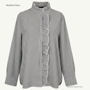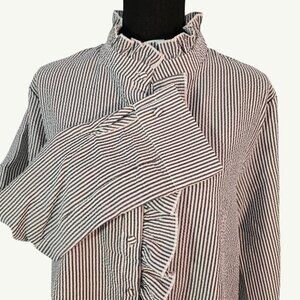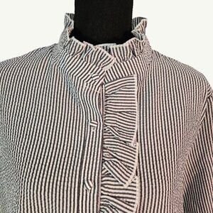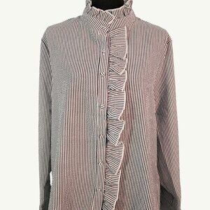 🩶Women’s Ruffle Detail Striped Button-Up Shirt | XXL (14) | NEW 🩶