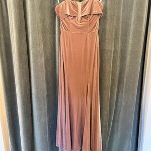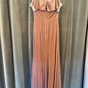 Elegant off-shoulder design. Luxurious velvet fabric. Stunning mauve color. Perfect for weddings.