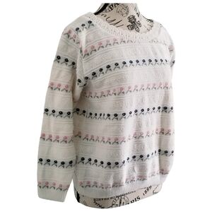Vintage 80s floral stripe knit sweater in soft ivory.