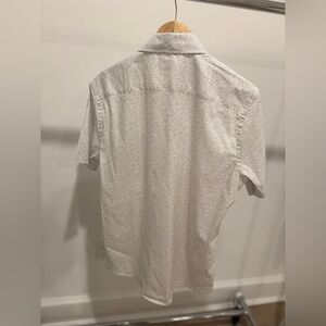 Elevate your style with this classic white patterned shirt. Perfect for any occasion, this shirt offers both comfort and elegance.