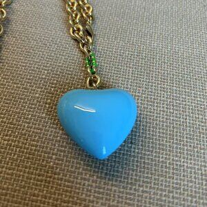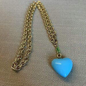 Gold tone brass chain necklace & enamel puffy heart pendant