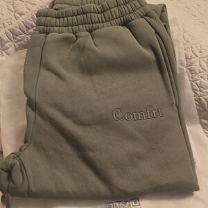 Buttery soft Minimalist Sweatpants are perfect for channeling the comfiest version of yourself. Comfrts's sweatpants feature a straight fit through hip and thigh with an elasticized hem, making them the perfect jogger. They also have an elastic waistband and oversized pockets for ultimate comfort and functionality. Make sure to complete the set with the Minimalist Hoodie for head to toe Comfrt. See other listing. NWT