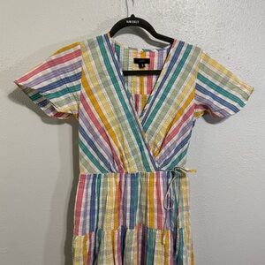 J. Crew Multicolor Striped Midi Dress plaid seersucker cotton size 2