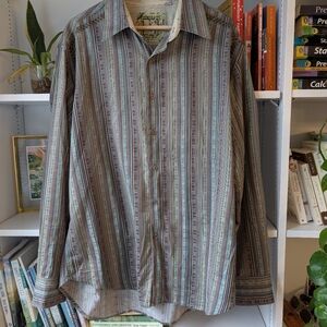 Robert Graham Men's Button-Up Shirt Striped Brown Blue Multicolour Size XL