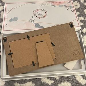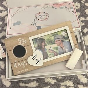 Photo frame for newly engaged couples with daily count down feature, chalk included. Includes hooks to hang or can be placed on a surface.
