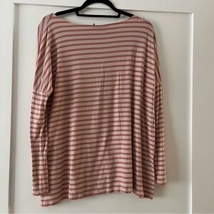 Chic long sleeve top with pink and white stripes. Soft fabric for everyday comfort. Ideal for casual wear.