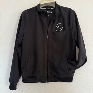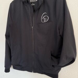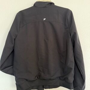 Sleek black windbreaker by Fabletics. Lightweight and stylish. Ideal for casual wear.