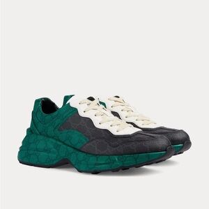 Gucci 746101 FAB4D 1059 Men's Shoes Green, Black & White Nylon GG Supreme Rhyton Sneakers (GGM1741)