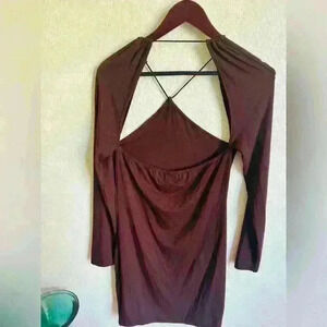 SHEIN BAE Chocolate Brown BodyCon Cut-Out Dress Size: Large