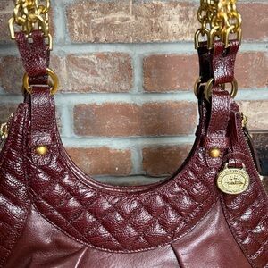 Brahmin Elisa Smooth & Quilted Leather Shoulder Bag Hobo in Burgundy/Bordeaux Gold Chain