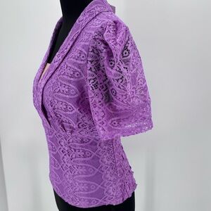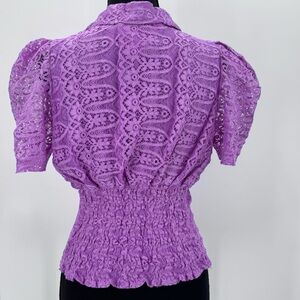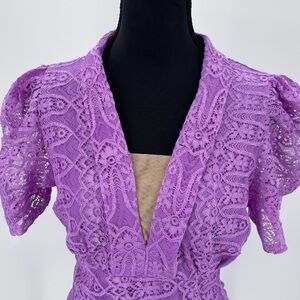 Romantic Lavender Lace bodycon FairyCore Puff Sleeve Plunging Neckline Top