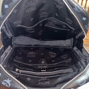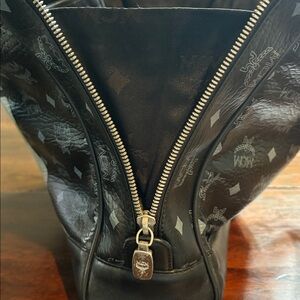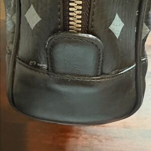 •Leather-trimmed zip pocket with silver-tone logo zip pull