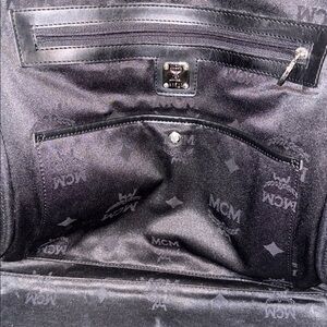 •Leather-trimmed slip pocket with black leather slip pocket on the exterior