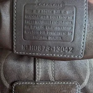 Stylish Coach shoulder bag with signature pattern. Features a sleek buckle and chain detail. Ideal for versatile wear.