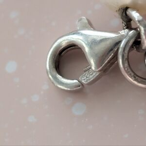 Clasp marked 925. I love charm dangles from genuine freshwater pearls. Wear alone or layer. Normal wear good condition