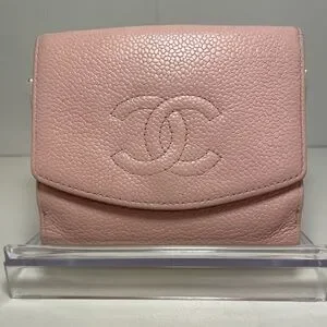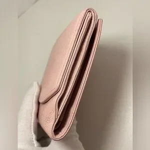 Elegant CHANEL wallet. Soft pink leather. Iconic logo embossed. Includes dust bag! Very good used condition. Typical coin residue but still gorgeous. Color is stunning and leather so soft!