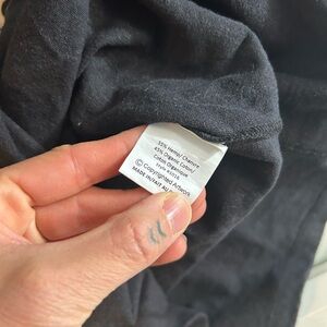 Black t-shirt featuring blue and white text from a concert tour.