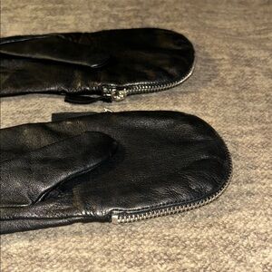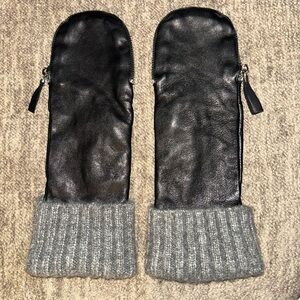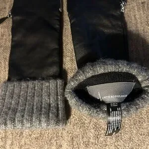 Anthropologie Black Leather Mittens with Gray Knit Cuff