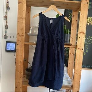Patagonia Blue Black Stripe Island Hemp Crossover Dress