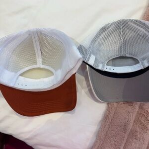 Set of two trucker hats. One features 'Texas' in bold letters. The other has a smiling emoji. Perfect for casual wear.