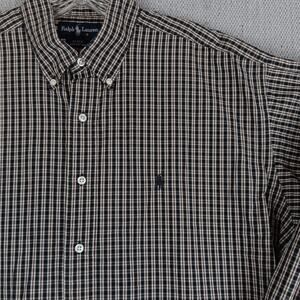 Vintage Ralph Lauren Blake Shirt Mens Large Brown/Navy Check Button Down Preppy