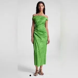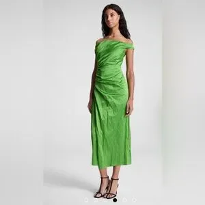 A.L.C. Camille Off Shoulder Satin Dress Elegant Green Off-Shoulder Dress size 6