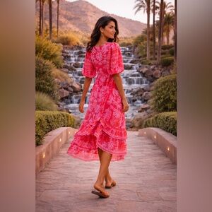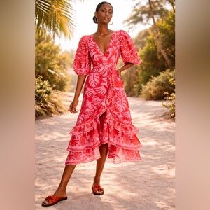Farm Rio Jungle Scarf Wrap Midi Dress Red Size XL New With Tags