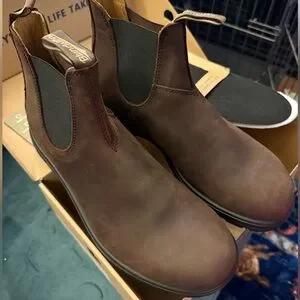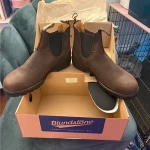 Sleek and versatile Chelsea boots. Durable leather construction. Ideal for everyday wear. Never worn, new in box.