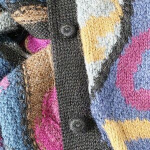 Vintage Peruvian Connection Alpaca Sweater Vest Women's Medium Maxi Long Duster Boho Multi-Color Graphic Knit Artsy Artisan