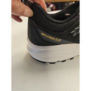 The NEW MEN Saucony Excursion TR17 GTX Black FOG (S20958-100) Size 11.5 M is a stylish and functional athletic shoe designed for men. With a low top shoe shaft style and lace-up closure, this sneaker offers a snug fit and support for walking activities. The black color and waterproof features make it versatile for various weather conditions, while the rubber outsole provides slip resistance for added safety. Made with a synthetic upper material and featuring the Saucony Excursion product line, this shoe combines comfort and performance for everyday wear.