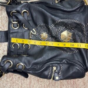 Jimmy Choo Ramona black soft leather leather metal logo embellished satchel bag!