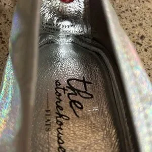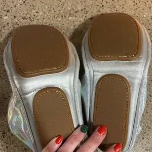 Never worn. Size 10 silver iridescent flats.